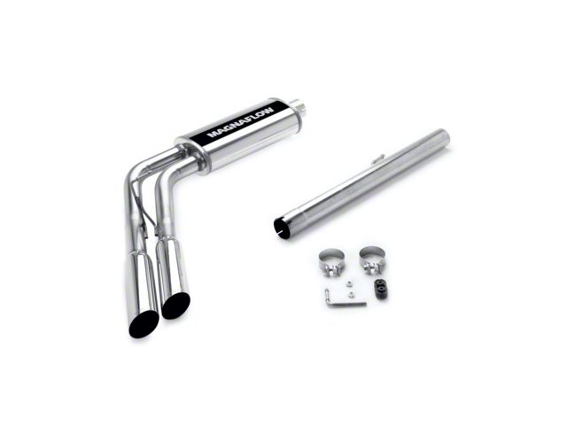 The MagnaFlow 2006-2007 Dodge Ram 1500 Street Series Cat-Back Performance Exhaust System brings out the personality of your 5.7L 2006-2007 Dodge Ram 1500 with our signature resonant, powerful engine tone and dyno-proven performance. Thanks to its fast-flowing, mandrel bent 3in. main piping and 1 Straight-Through mufflers ending in a Dual Same Side Before Passenger Rear Tire exit with 3.5in. Polished Welded-On Single Wall Angle Cut Cut Edge tips, this Dodge Ram 1500 exhaust kit has the performance chops to match its sporty sound and appearance. Upgrade your ride to the next level with an exhaust that has the pipes to put other Dodge Ram 1500's to shame. With this system your vehicle will be producing Very Aggressive exterior and Aggressive interior sound levels while leaving other cars and trucks feeling envious at every stoplight. Exhaust kit 16701 features a cat-back layout that replaces your ride's stock exhaust components from near the catalytic converter on back. Extensive 3D scanning during development has resulted in a direct-fit design that you can easily install yourself. 16701 is produced using CNC precision robotic manufacturing techniques and is backed by MagnaFlow's 1-year limited finish warranty and limited lifetime construction warranty.