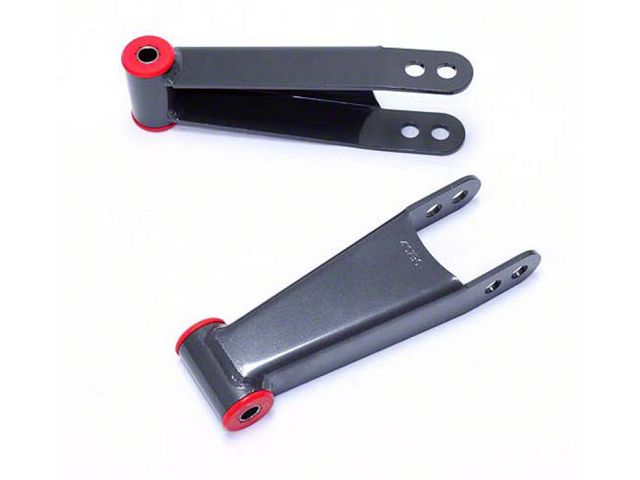 Shackle kits are an affordable way to change the ride height of a vehicle equipped with leaf spring suspension. Shackle lifts are often paired with longer shocks to lift vehicles with solid front axles and leaf springs.