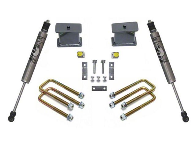Suspension Lift Kit with Shocks; 4 in. Rear Lift; Includes Strut Spacers; Lift Blocks; U-Bolts; Carrier Bearing Drop Bracket; Fox Rear Shocks