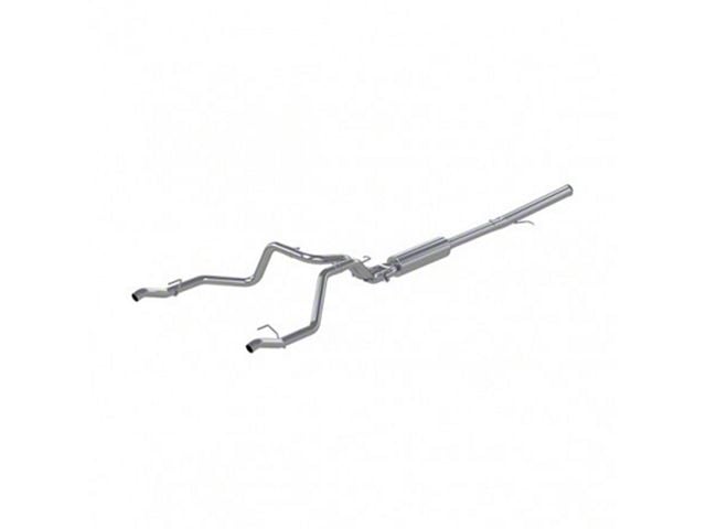 Armor Pro Cat Back Exhaust System; 2.5 in.; Incl. Front/Ext. Pipe/Muffler/Over Axle Pipes/Tailpipes/Hrdw; Dual Rear Exit; 304 Stainless Steel; Does Not Fit w/2 Piece Driveshafts; Uses Factory Bezels. Works only for trucks with Stock Dual System. Excludes 2WD Crew Cab 6.5' Box (2 PC Driveshaft).