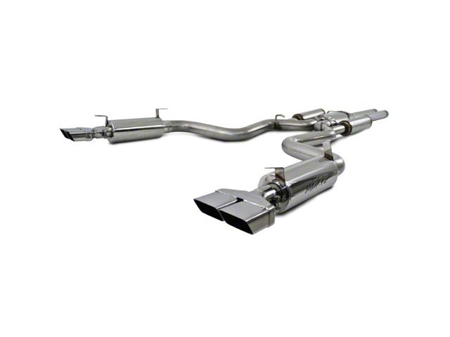 Stand out from the crowd with a performance exhaust system that sounds great. This Armor Pro Cat Back Exhaust System includes extension pipe, resonator, tailpipes, mufflers, hardware, and quad rectangular tips. It features a dual split rear exit design and is constructed from T304 Stainless Steel.
