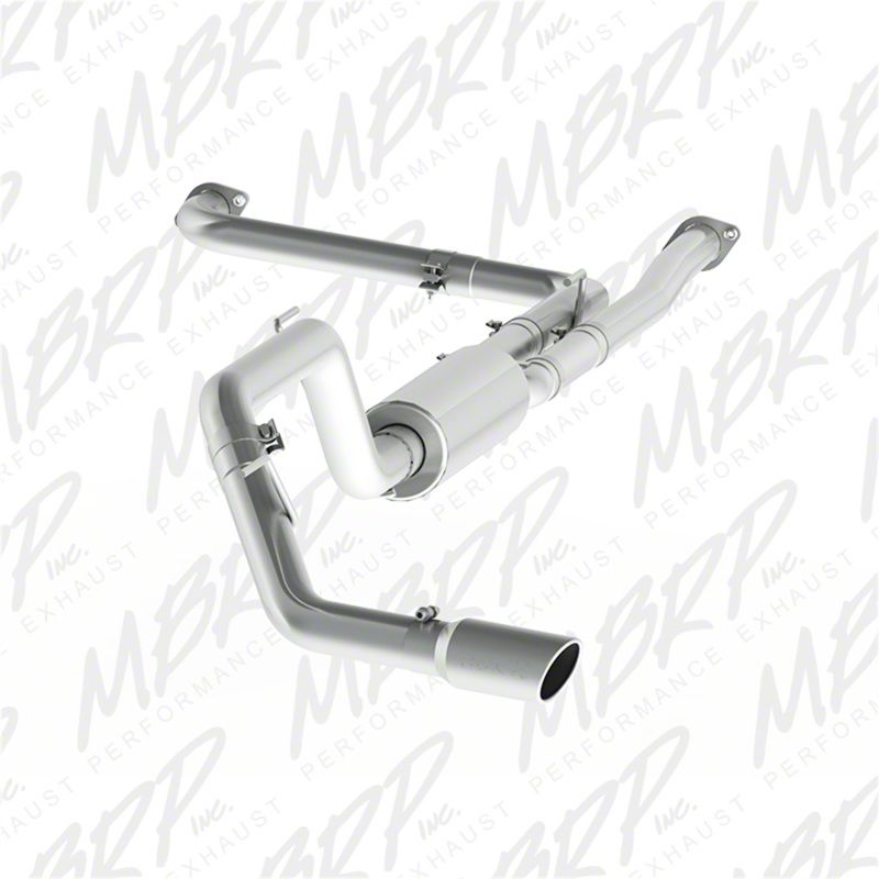 This exhaust system enhances your vehicle's looks, sound, and performance. It features a fully sealed tubing for rust resistance, MBRP signature styling, and an aggressive exhaust tone. The kit includes a dual front pipe, extension pipe, muffler, tailpipe, hardware, and a 4-inch OD tip.