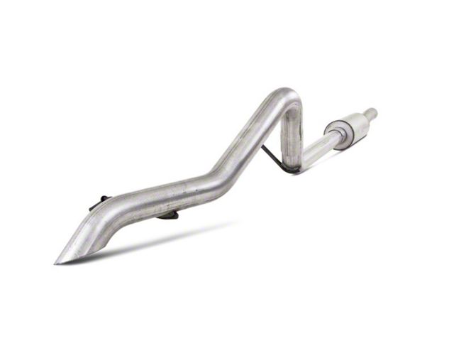 This exhaust system includes an extension pipe, overaxle pipe, off-road tailpipe, muffler, and hardware. The muffler is positioned before the axle, and the system features a single rear exit design. No tip is required, as the aggressive exhaust tone speaks for itself.