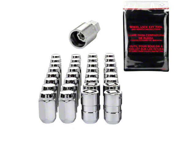 The convenient way to order wheel locks and lug nuts; Contains all the hardware that you need to install 4 wheels and tires. McGard manufactures wheel locks and lug nuts in the USA to meet or exceed O.E.M. standards for safety and durability. Presently, McGard is an Original Equipment wheel lock supplier to most automobile brands around the world. These easy-to-use, one-piece wheel locks function like regular lug nuts, but require a special key tool for installation and removal. The computer generated key designs allow for an infinite number of key patterns. McGard lug nuts are guaranteed for life not to rust, chip or peel. Designed and built for the real world. Think about it, harsh elements, nasty corrosive wheel cleaners, overzealous impact guns, loose fitting lug wrenches and lead-foot drivers. This kind of treatment destroys ordinary lug nuts. McGard lug nuts can take the punishment and keep your wheels looking beautiful. Every McGard wheel lock and lug nut is fully machined from restricted chemistry steel made specifically for McGard and through-hardened for its unsurpassed level of security and safety. For use with steel or aluminum wheels with exposed decorative lug nuts that are tapered at the bottom. This product may contain globally sourced materials/components.