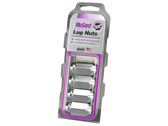 Chrome plated lug nuts lead a tough life. Think about it, harsh elements, nasty corrosive wheel cleaners and lead-foot drivers. Not to mention overzealous impact guns and loose fitting lug wrenches. This kind of treatment destroys ordinary lug nuts which turns even the best looking wheels ugly. Tough Nuts can take the punishment and keep your wheels looking beautiful. Tough Nuts are guaranteed for life not to rust, chip or peel. McGard manufactures lug nuts in the USA to meet or exceed O.E.M. standards for safety and durability. Every lug nut is fully machined from restricted chemistry steel made specifically for McGard and through-hardened for its unsurpassed level of safety. McGard's plating process includes several layers of nickel and one layer of microporous chrome producing a superior finish while protecting against rust. Tough Nuts are designed and built for the real world, because life is tough. For use with steel or aluminum wheels with exposed decorative lug nuts that are tapered at the bottom. This product may contain globally sourced materials/components.