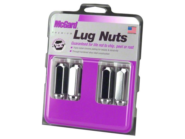 Chrome plated lug nuts lead a tough life. Think about it, harsh elements, nasty corrosive wheel cleaners and lead-foot drivers. Not to mention overzealous impact guns and loose fitting lug wrenches. This kind of treatment destroys ordinary lug nuts which turns even the best looking wheels ugly. Tough Nuts can take the punishment and keep your wheels looking beautiful. Tough Nuts are guaranteed for life not to rust, chip or peel. McGard manufactures lug nuts in the USA to meet or exceed O.E.M. standards for safety and durability. Every lug nut is fully machined from restricted chemistry steel made specifically for McGard and through-hardened for its unsurpassed level of safety. McGard's plating process includes several layers of nickel and one layer of microporous chrome producing a superior finish while protecting against rust. Tough Nuts are designed and built for the real world, because life is tough. For use with steel or aluminum wheels with exposed decorative lug nuts that are tapered at the bottom. This product may contain globally sourced materials/components.