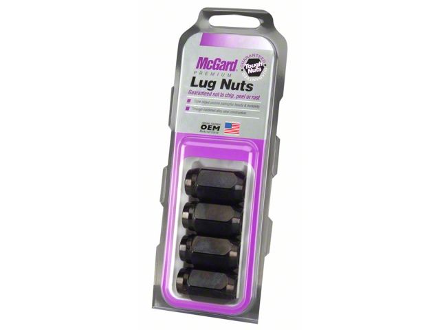 Chrome plated lug nuts lead a tough life. Think about it, harsh elements, nasty corrosive wheel cleaners and lead-foot drivers. Not to mention overzealous impact guns and loose fitting lug wrenches. This kind of treatment destroys ordinary lug nuts which turns even the best looking wheels ugly. Tough Nuts can take the punishment and keep your wheels looking beautiful. Tough Nuts are guaranteed for life not to rust, chip or peel. McGard manufactures lug nuts in the USA to meet or exceed O.E.M. standards for safety and durability. Every lug nut is fully machined from restricted chemistry steel made specifically for McGard and through-hardened for its unsurpassed level of safety. McGard's plating process includes several layers of nickel and one layer of microporous chrome with black PVD producing a superior finish while protecting against rust. Tough Nuts are designed and built for the real world, because life is tough. For use with steel or aluminum wheels with exposed decorative lug nuts that are tapered at the bottom. This product may contain globally sourced materials/components.