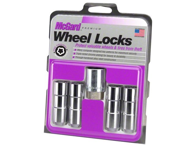 Protecting the world's finest wheels and tires from theft since 1964. McGard manufactures wheel locks in the USA to meet or exceed O.E.M. standards for safety and durability. Presently, McGard is an Original Equipment wheel lock supplier to most automobile brands around the world. These easy-to-use, one-piece wheel locks function like regular lug nuts, but require a special key tool for installation and removal. The steel collar on the user friendly key guides the key into the lock pattern. The collar holds the key in alignment for easy installation and removal. The computer generated key designs allow for an infinite number of key patterns. The extra narrow pattern groove on the lock resists the intrusion of removal tools into the pattern. Every McGard wheel lock is fully machined from restricted chemistry steel made specifically for McGard and through-hardened for its unsurpassed level of security. McGard's plating process includes several layers of nickel and one layer of microporous chrome producing a superior finish while protecting against rust. This product may contain globally sourced materials/components.
