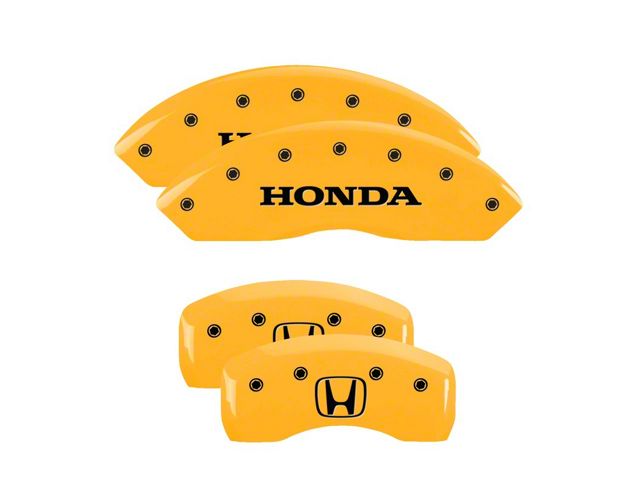MGP Caliper Covers are a car accessory designed and manufactured specifically for your Honda vehicle to cover up and hide those ugly brake calipers. These aluminum caliper covers are finished with a high-quality powder coat. These yellow caliper covers will enhance your wheel appearance and curbside appeal. MGP Brake Caliper Covers are tested for safe fitment and are licensed by major manufacturers.