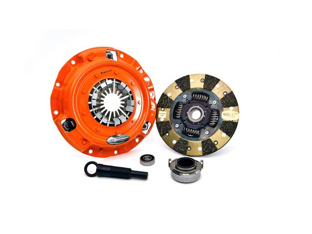 The Centerforce Dual Friction Clutch Series is a performance matched pressure plate & disc combination featuring the patented Centerforce centrifugal weight system (where applicable) and specialized machining processes to provide a performance clutch that offers exceptional street characteristics, while offering outstanding holding-capacity and durability. Furthermore, the Centerforce Dual Friction disc has an organic full facing on one side for longevity and an organic segmented facing on the other side providing increased holding capacity. Some applications have the organic segmented facings of both sides. The Dual Friction clutch is engineered for those who are looking for the ultimate in street/strip holding power and performance without sacrificing pedal effort and driver control. While the Dual Friction has been engineered primarily as a street clutch it can be used in mild competition applications.