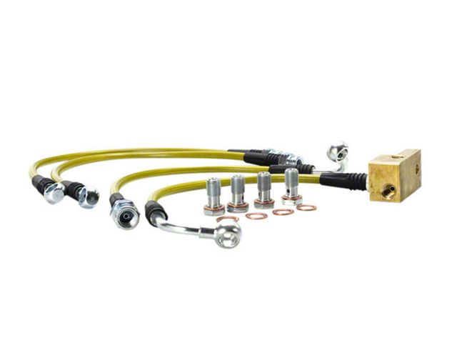 Improve the feel and pedal response of your brakes with a new set of brake lines. Upgrading your OEM brake lines to a set of stainless braided brake lines is a great way to improve the stiffness of your brake pedal while also holding more brake pressure. Some aftermarket suspension applications may require a set of extended brake lines. This would be a great time to upgrade to stainless steel if possible.