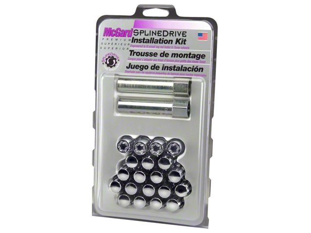 The convenient way to order Tuner wheel locks and lug nuts; contains all the wheel locks and lug nuts that you need to install 4 wheels and tires.; Why settle for ordinary lug nuts? SplineDrive Lug Nuts combine style and performance.; A no-compromise design engineered to fit small diameter recesses in Tuner style wheels.; SplineDrive lug nuts offer closed-end design, maximum gripping power, more stud engagement and a greater seating surface than socket style lug nuts.; In addition they are 30% lighter in weight.; Like all McGard lug nuts, the chrome plating is guaranteed for life not to rust, chip or peel.; The easy-to-use, one-piece wheel locks function like regular lug nuts, but require a special key tool for installation and removal.; The computer generated key designs allow for an infinite number of key patterns.; McGard manufactures wheel locks and lug nuts in the USA to meet or exceed O.E.M.; standards for safety and durability.; Every lug nut and wheel lock is fully machined from restricted chemistry steel made specifically for McGard and through-hardened for its unsurpassed level of safety.; For use on aluminum cone seat wheels only.; Clamshell Packaging.; This product may contain globally sourced materials/components.