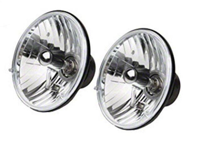 Halogen conversion headlight kit with advanced multi surface reflector and clear glass lens. These headlights produce 60% more luminous beam than conventional OEM sealed beam headlamps. Made from a durable die cast aluminum reflector for more reliable quality and improved beam output. They are SAE/DOT approved for street legal use. Includes replaceable H4, 12V street legal 55/60 watt bulbs and will also accept off road bulbs up to 130 watts. Easy install for all replacement factory 7-inch round or 200mm rectangle headlamps. Also compatible with most factory harness and hardware for most street applications (50/60w). Lighting upgrade for most factory sealed beam applications -autos, trucks, SUV's, motorcycles, vintage vehicles and hot rods.