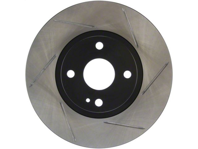 StopTech Slotted Sport Rotors are 1-piece direct replacement brake discs for factory brake systems and stock calipers that look great behind your wheels and offer significantly improved braking performance. The unique slotting aids with heat and brake dust dispersal; prevents glazing of the pads; adds bite and improves wet and dry braking performance. Built to last; the black e-coating provides protection from corrosion and the high carbon metallurgy (in most applications) offers quieter operation; better crack resistance and increased performance.