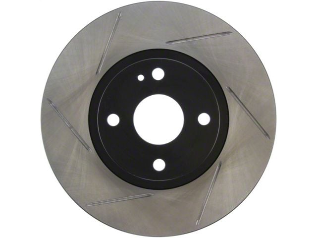 StopTech Slotted Sport Rotors are 1-piece direct replacement brake discs for factory brake systems and stock calipers that look great behind your wheels and offer significantly improved braking performance. The unique slotting aids with heat and brake dust dispersal; prevents glazing of the pads; adds bite and improves wet and dry braking performance. Built to last; the black e-coating provides protection from corrosion and the high carbon metallurgy (in most applications) offers quieter operation; better crack resistance and increased performance.