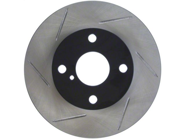 StopTech Slotted Sport Rotors are 1-piece direct replacement brake discs for factory brake systems and stock calipers that look great behind your wheels and offer significantly improved braking performance. The unique slotting aids with heat and brake dust dispersal, prevents glazing of the pads, adds bite, and improves wet and dry braking performance. Built to last, the black e-coating provides protection from corrosion and the high carbon metallurgy (in most applications) offers quieter operation, better crack resistance, and increased performance.