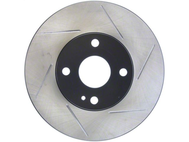 StopTech Slotted Sport Rotors are 1-piece direct replacement brake discs for factory brake systems and stock calipers that look great behind your wheels and offer significantly improved braking performance. The unique slotting aids with heat and brake dust dispersal; prevents glazing of the pads; adds bite and improves wet and dry braking performance. Built to last; the black e-coating provides protection from corrosion and the high carbon metallurgy (in most applications) offers quieter operation; better crack resistance and increased performance.