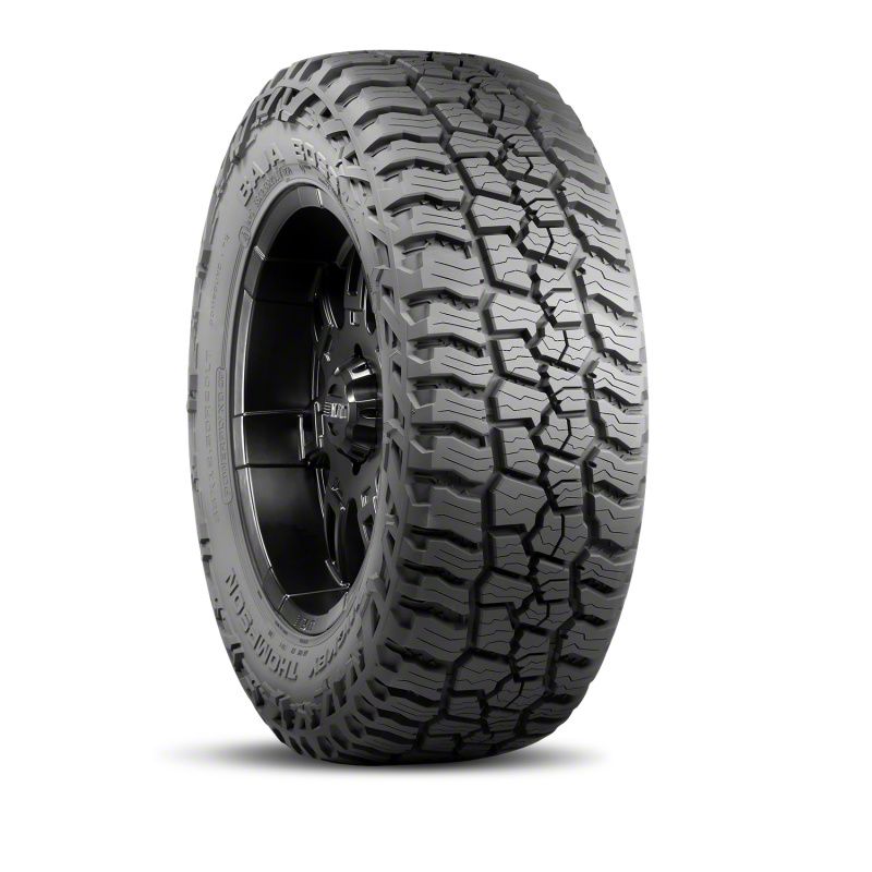 The Baja Boss A/T delivers premium on-road handling, performance, and tread wear while also dominating in the mud and snow thanks to its pioneering asymmetric tread design, silica-reinforced compound, extreme Sidebiters and revolutionary PowerPly XD 3-ply construction LT sizes only. Featuring a 50,000-mile treadwear warranty and 3PMS designation, it's Mickey Thompson's most innovative hybrid A/T to date - aggressive looks, low noise, long-lasting tread, and smooth ride. 3PMS Symbol certifies that all sizes 12.50 (315) and narrower are severe snow rated.