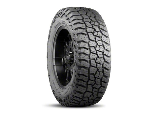The Baja Boss A/T delivers premium on-road handling, performance, and tread wear while also dominating in the mud and snow thanks to its pioneering asymmetric tread design, silica-reinforced compound, extreme Sidebiters and revolutionary PowerPly XD 3-ply construction LT sizes only. Featuring a 50,000-mile treadwear warranty and 3PMS designation, it's Mickey Thompson's most innovative hybrid A/T to date - aggressive looks, low noise, long-lasting tread, and smooth ride. 3PMS Symbol certifies that all sizes 12.50 (315) and narrower are severe snow rated.