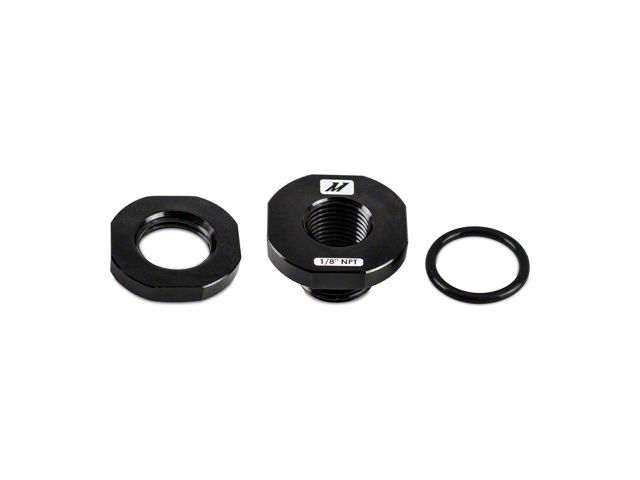 Adding ancillary ports to your intercooler or engine cooling system can be a challenge, especially if you don't have access to metal fabrication equipment. Our team recognized the need for an easy-to-install 1/8"-NPT adapter bung for use on existing rubber or silicone couplers. Keeping this install tidy and professional was our primary goal, which we achieved by designing a subtle fitting from high-quality materials. Our 1/8-in-NPT hose bung is precisely CNC-machined from 6061 aluminum. We've also machined space for a durable silicone O-ring to ensure a leak-free seal with both air and liquid passageways. Our 1/8-in-NPT adapter bung features a durable black anodized finish, ensuring optimal resistance against corrosion. This adapter can be installed in minutes and accepts any 1/8" NPT accessory such as injection nozzles, sending units, and sensors. As with all our products, this aluminum 1/8-in-NPT add-in bung includes our signature Mishimoto Lifetime Warranty.