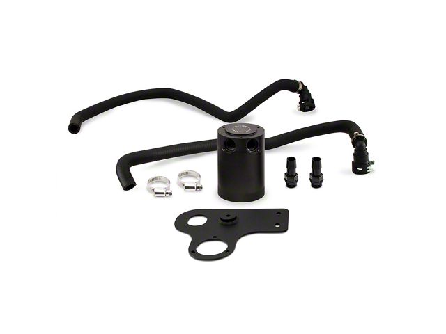 Mishimoto's 2018+ Mustang catch can kit features a patent pending 2-port Compact Baffled Oil Catch Can with a 50-micron bronze filter and an internal baffle to better separate oil from the crankcase vapors. Two direct-fit hoses and an application-specific bracket make for a quick and simple installation.