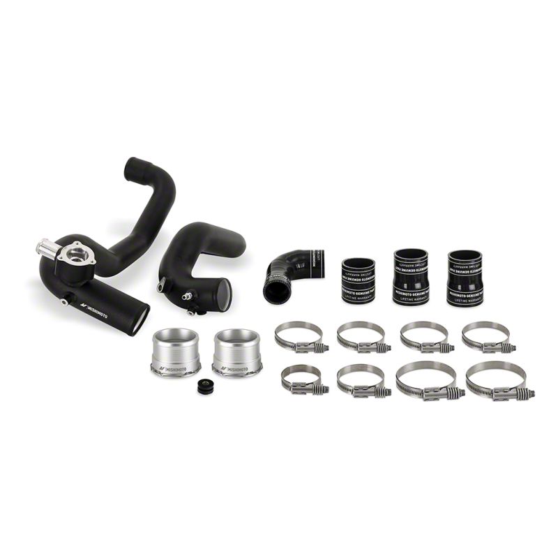Mishimoto has developed a direct-fit Intercooler Pipe kit for the 2021+ Ford Bronco 2.3L EcoBoost that allows owners to maximize the performance potential of their 2.3L Bronco. Our kit replaces the weak and unattractive plastic piping with high-flowing, durable aluminum piping and silicone boots with DuraCore technology. The larger volume of our pipes allows your 2.3L EcoBoost to breathe freely and make the most of its turbo boost. DuraCore boots coupled with constant-tension worm gear clamps provide superior strength and blowout resistance, ensuring boost always makes it to its destination. Available with a sleek polished finish or powder-coated in stealthy wrinkle black, these pipes are a great addition to every 2.3L Bronco from daily driving to the office, to trailblazing through the woods. Combine this kit with the Mishimoto 2021+ Bronco Stock Location or High-Mount Intercooler to unleash everything the 2.3L EcoBoost engine is capable of. As with all Mishimoto products, this 2021+ Ford Bronco 2.3L EcoBoost Intercooler Pipe kit is backed by our Lifetime Warranty.