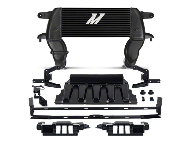 The Ford Bronco has a heritage of tough, go-anywhere capability. The 2021+ Bronco is no different and deserves a cooling system that can stand up to the task. Here at Mishimoto, we never back down from a challenge, so we developed a high-mount intercooler to let your 2.3L or 2.7L EcoBoost breathe the coolest, densest air possible to help improve performance and overall efficiency. We relocated this high-mount intercooler to the upper grille to allow greater clearance, improved entry and exit angle, and protect your intercooler from obstacles on the trail. This relocation also frees up your front bumper for winches and other essential off-road accessories. We've also included new ducting to ensure ample airflow through the intercooler in its new location. The Mishimoto High-mount Intercooler features a 3.1 inch-thick core with precision TIG-welded cast aluminum end tanks. Compared to the factory tube-and-fin intercooler, durability against heat, pressure, and debris on the road or trail is significantly improved. More durability is always a good thing, but it's even better when it's backed by performance. This high-mount intercooler boasts an increase of 49-percent core volume and 93-percent external fin surface area, which results in a reduction of outlet temperatures by 21-degrees (2.3L EcoBoost) / 15.5-degrees (2.7L EcoBoost) over stock. Combined, this generates gains of 4.5 hp and 10.8 lb-ft of torque for the 2.3L EcoBoost and 8.0 hp and 10.2 lb-ft torque for the 2.7L EcoBoost. We saw exceptional improvement in our trail simulation heat-soak testing where, after 6 back-to-back dyno runs, we still saw outlet temperatures 20-degrees cooler than stock. Functionality of adaptive cruise control is retained utilizing a relocation bracket and 360-degrees cameras are unaffected. As with all our products the Mishimoto 2021+ Ford Bronco High-mount Intercooler is backed by our signature Mishimoto Lifetime Warranty.