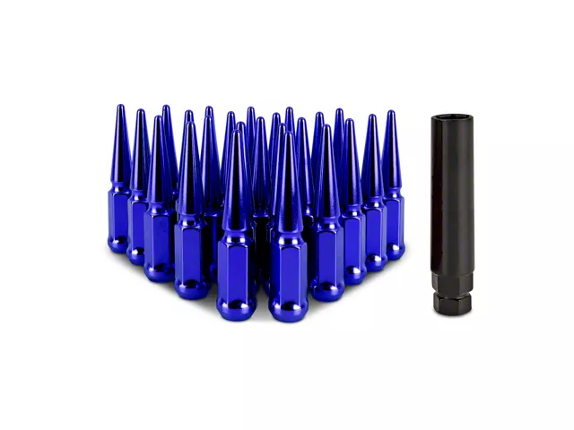 The details matter when you're building your dream car. Every bolt is meticulously chosen for not only function, but also aesthetics. This philosophy extends to every part of the car, including the lug nuts. To add aggressive style to your wheels, Mishimoto now offers high-quality spiked lug nuts. These cold-forged, carbon steel lug nuts feature a 4-inch spike design that will add an aggressive look to any set of wheels. These lug nuts feature a 60-degree tapered/acorn seat and M14x1.5 threads that are suitable for many aftermarket wheels. The one-piece design and electroplated coating ensure unparalleled durability in any climate. To make installation easy, we've included an extra-deep socket with 19 mm and 21mm hex ends. We offer these lug nuts in a variety of colors to suit any color scheme, including black, blue, red, chrome or gold and in kits of 24 or 32 pieces. Like all Mishimoto products, these spiked lug nuts include our Mishimoto Lifetime Warranty for long-lasting style.