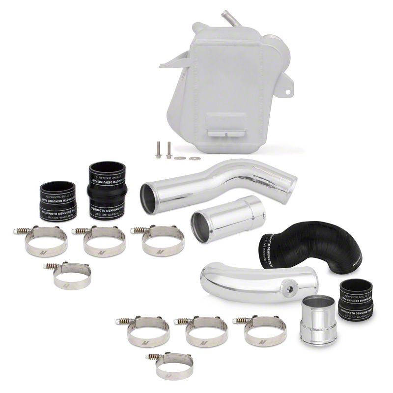 The Mishimoto 6.7L Powerstroke intercooler kit brings even more reliability to the 6.7L by ditching the stamped and stacked plate stock design. Instead, our intercooler is built with cast aluminum end tanks that are precision TIG welded to the robust bar-and-plate core. The cast end-tanks reduce potential failure points, making them more reliable than cut and welded tanks. Further durability is added by the inclusion of aluminum intercooler pipes and silicone couplers with Duracore Technology.