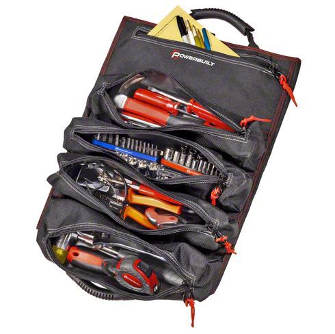 When you need tools on the go, there isn’t always space for a large hard toolbox in your vehicle, RV, or side by side. Powerbuilt has the perfect solution to carry an impressive amount of your tools in a well-organized, portable, and durable tool roll. The Powerbuilt 5 Pocket Tool Roll Organizer is a tough tool roll made of tough 1200 denier nylon with reinforced seams and heavy-duty zippers. With five zippered pockets and 14 tool slots, it can carry your EDC and emergency tools when you’re on the move. The Tool Roll opens to 18 ½ inches by 15 inches which can be laid flat or hung via the convenient built-in hanger strap. Once done, pull on the closure strap, buckle, and go. It’s that easy. Includes two rubber-padded carry handles for a comfortable, sure grip. Anyone who uses tools for a living, ventures off-road, or travels in a van or RV will love this tool roll.
