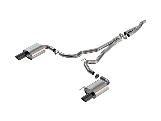 This 2.5" diameter BORLA Cat-Back system is designed for use on EcoBoost cars WITHOUT the Active Exhaust feature. It features the classic S-Type sound with no drone inside the vehicle and 4" bright chrome on T-304 stainless steel tips. Systems with black chrome on T-304 stainless steel tips, and carbon fiber tips are also available. BORLA Cat-Back and Axle-Back exhaust systems feature patented straight-through and multi-core technology designed to unleash hidden horsepower. Increased exhaust velocity adds power, driving excitement, fuel economy, and the distinctive BORLA Sound of Power respected by motoring enthusiasts everywhere. Each system is built from premium T-304 stainless steel, superior to T-400 series knockoffs (such as 409), to give you the absolute best in performance and durability. Ultra-smooth mandrel bends ensure maximum flow & power, and precision computer numerical control (CNC) manufacturing ensures an accurate fit. Best of all, BORLA stands behind every system with a Million-Mile Warranty. Just what you'd expect from the world's most experienced (and most winning) exhaust brand.