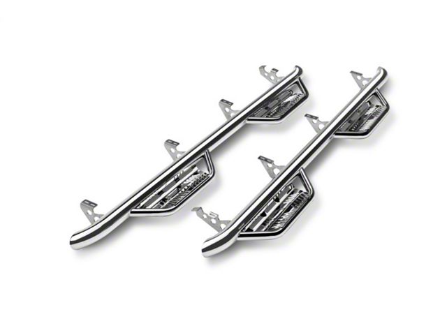 Patented N-FAB hoop step design featuring an all-new expanded and enclosed sure-grip step plate. With a 3 in. main tube diameter, this application fits high and tight to the vehicle body for a clean modern style. Fully welded 1-piece construction for strength, long lasting durability and ease of installation! Created from Stainless Steel construction. Drop down step design and location is engineered to allow for ease of access on stock or lifted vehicles. Lifetime finish warranty on polished stainless steel, 5 year finish warranty on textured black finish and lifetime craftsmanship warranty. For the ultimate vehicle access experience in any condition!