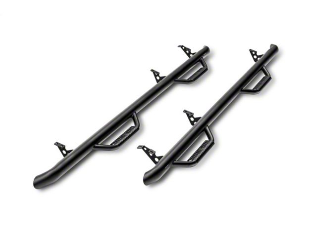 Built with today's work truck in mind, N-FAB offers its patented hoop step design and innovative mounting system in a Cab Length configuration. Designed with classic N-FAB styling, Cab Length Nerf Steps are ideal for flat bed trucks, stake bed trucks, vehicles with campers, and even trucks with side exhaust forward of the rear wheels. Manufactured from .084 wall tubular steel, Cab Length Nerf Steps provide all of the strength and durability for which N-FAB is known. All Nerf Steps have a 5 year Finish and Lifetime Workmanship Warranty.