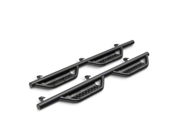Built with today's work truck in mind, N-FAB offers its patented hoop step design and innovative mounting system in a Cab Length configuration. Designed with classic N-FAB styling, Cab Length Nerf Steps are ideal for flat bed trucks, stake bed trucks, vehicles with campers, and even trucks with side exhaust forward of the rear wheels. Manufactured from .084 wall tubular steel, Cab Length Nerf Steps provide all of the strength and durability for which N-FAB is known. All Nerf Steps have a 5 year Finish and Lifetime Workmanship Warranty.