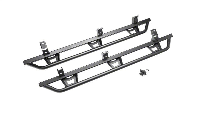 The N-FAB TrailSlider is a body-mount rock slider that features 3/16 in. heavy gauge steel tubing and gussets that will hold up to extreme conditions. The TrailSlider also comes powder-coated in our durable, textured black finish. Easy to install with no special tools required, the new N-FAB TrailSlider is the ultimate upgrade for any 4-Runner, Wrangler, Tacoma, Colorado, and Ranger.