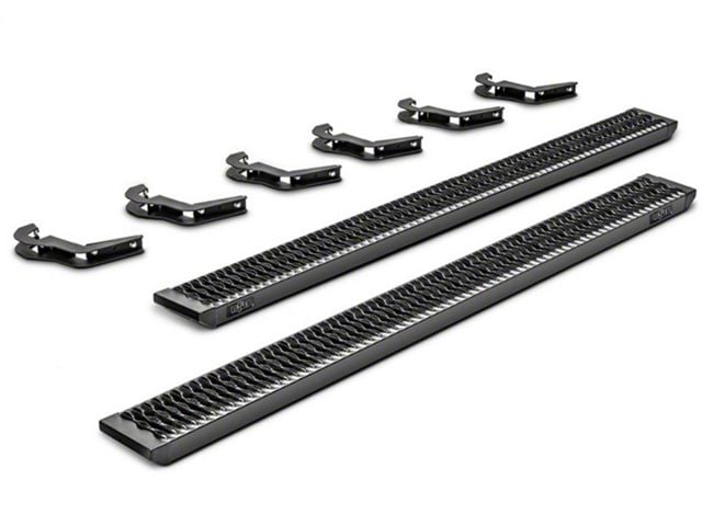 The Growler running board provides a clean yet aggressive look your vehicle. The Sure Grip tread design allows for ultimate traction in any condition. All aluminum construction with modular steel brackets offers long lasting durability and strength for all of your vehicle needs. Bolt-on brackets make installation quick and easy. This is a convenient option for work truck and fleet solutions.