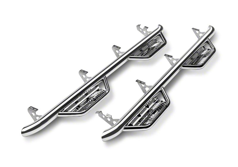 Patented N-FAB hoop step design featuring an all-new expanded and enclosed sure-grip step plate. With a 3 in. main tube diameter, this application fits high and tight to the vehicle body for a clean modern style. Fully welded 1-piece construction for strength, long lasting durability and ease of installation! Created from Stainless Steel construction. Drop down step design and location is engineered to allow for ease of access on stock or lifted vehicles. Lifetime finish warranty on polished stainless steel, 5 year finish warranty on textured black finish and lifetime craftsmanship warranty. For the ultimate vehicle access experience in any condition!