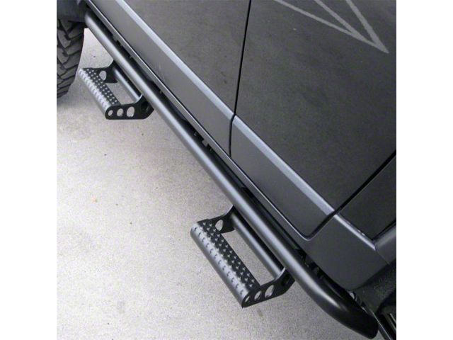 N-FAB RKR Rails Provide superior protection while enhancing the look of the vehicle. Constructed using 0.12 in. wall, 1.75 in. tubular steel, RKR Rails are treated inside and out for extra corrosion resistance so you know they are built to last. Finished with a durable textured black powder coat, N-FAB RKR Rails look as good as they perform both on and off-road. Making a great product even better, N-FAB offers optional Detachable Steps that are compatible with all N-FAB RKR Rails and Factory Toyota FJ Rock Rails. These steps offer convenient vehicle access for daily use and can be removed to allow for maximum group clearance when off-road.