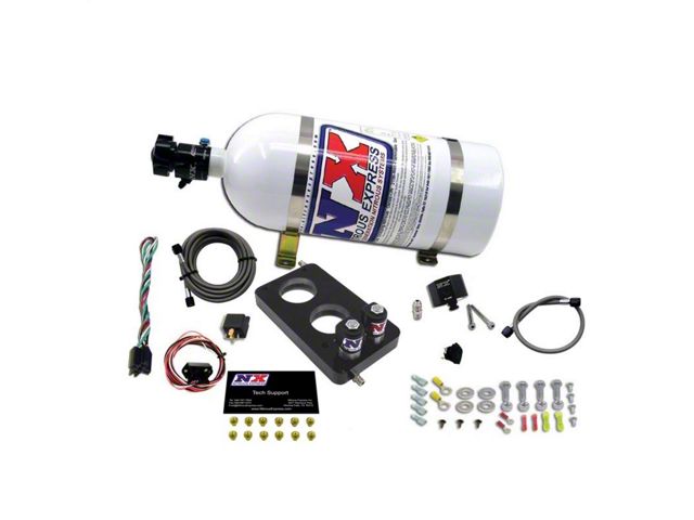 The Nitrous Express 4.6L 3-Valve Plate System features Phase 3 Spraybarless technology for the ultimate in atomization and distribution. The billet plate bolts between the throttle body and intake making installation quick and easy. The solenoids are integrated into the plate for a super clean look. This system includes a TPS Autolearn switch so the nitrous only activates at wide open throttle and automatically turns off when you let your foot off the accelerator. To make installation even easier, a billet fuel rail adapter is included so there is no need to splice into the factory fuel lines. The system includes jetting from 35 to 150 horsepower and can be upgraded to 250 horsepower with additional jets. Includes a 10lb. bottle, braided stainless lines, stainless bottle brackets, four color installation manual, arming switch as well as every nut, bolt and electrical connector needed to complete the installation. Fits 2010 V8 CAMAROS.
