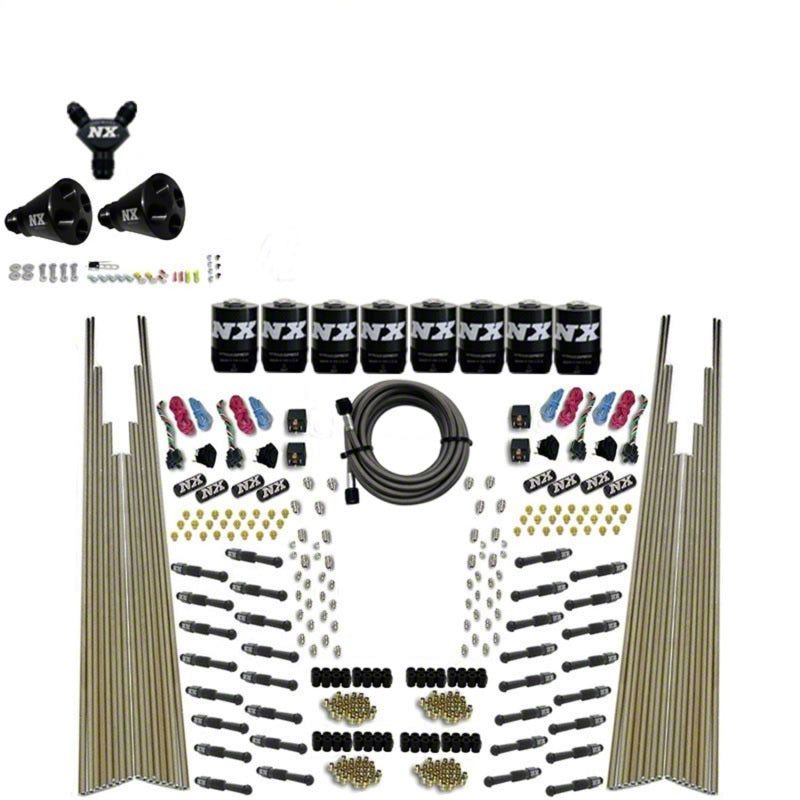 This four stage NX Dry Direct Port System provides nitrous directly into each cylinder through four sets of high flow NX Dry Nozzles. This system is designed to be used with an engine management system that can add nitrous enrichment through the engine's fuel system. A jet card with lbs/hr flow data for each horsepower setting is provided to aid in tuning your engine management systems nitrous enrichment settings. Includes eight billet aluminum and carbon fiber Lightning Nitrous Solenoids, thirty two NX Dry Nozzles, 6an nitrous feedline, jets for 100-600hp per stage, WOT switch, relay, relay harness and all necessary hardware to complete the installation.