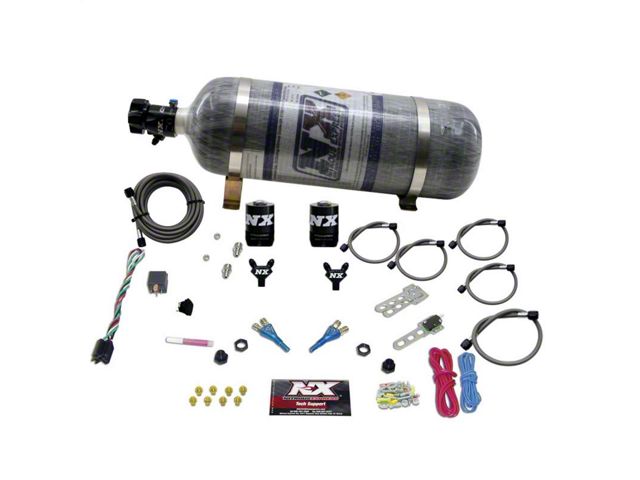 If you want the best this is it. The NX Stage 1 EFI nitrous system is the top of the line EFI power booster on the market. From the highest flowing solenoids, to our patented Shark nozzle, this system screams nothing but quality. NX has a system for every EFI car in the world. Available in horsepower levels from 35-50-75 for most 4 and 6 cylinder cars, and up to 150 for 8, 10 and 12 cylinder engines. All NX EFI Stage One Systems come complete with your choice of 5lb, 10lb, 15lb, or 12lb composite nitrous bottle, stainless bottle bracket, Lightning Solenoids, extra long stainless braided N2O line, and all necessary hardware to complete the installation.