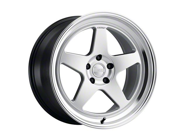 A 19X10.5 Kansei wheel. Overall wheel info: Diameter: 19, Width: 10.5, Bolt Pattern: 5X114.3, wheel_offset: +22, Finish: Hyper Silver with Bright Machined Lip, Part No.: K12H-191512+22 -