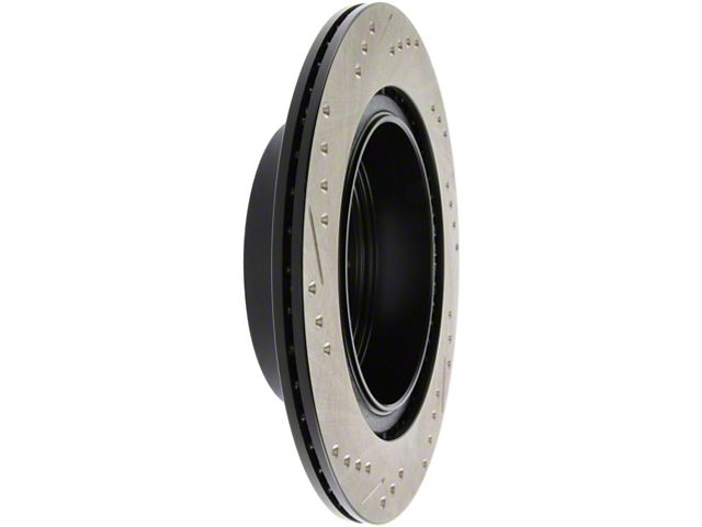 StopTech Drilled and Slotted Sport Rotors are 1-piece direct replacement brake discs for factory brake systems and stock calipers that look great behind your wheels and offer significantly improved braking performance. The unique cross-drilling and slotting aids with heat and brake dust dispersal, prevents glazing of the pads, adds bite and improves wet and dry braking performance. Built to last, the black e-coating provides protection from corrosion and the high carbon metallurgy (in most applications) offers quieter operation, better crack resistance and increased performance.