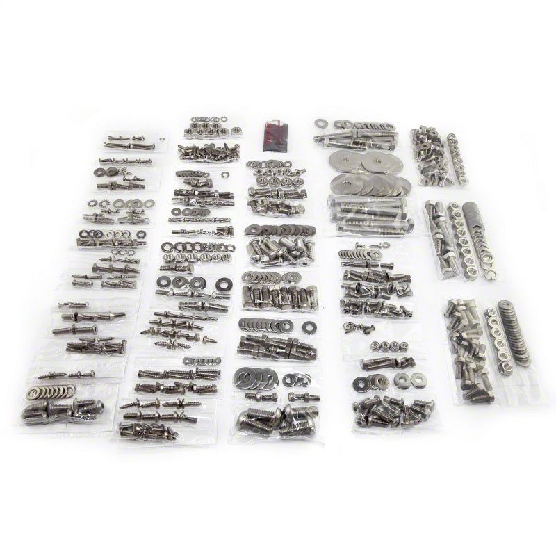 Omix proudly offers a vast collection of OE quality replacement parts for Jeep & Willys vehicles to help keep the Jeep legend alive. This replacement stainless steel body fastener kit fits 87-95 Wrangler YJ models equipped WITH a factory hard top. The kit includes all the fasteners necessary to reassemble your YJ the RIGHT way with quality, corrosion-resistant fasteners that look as great as they perform. All hardware is bagged and labelled for its particular use. Contains 754 pieces