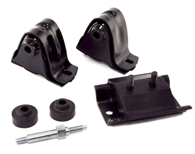 Omix proudly offers all the parts you need to keep your Willys/Jeep running like new with quality standards that always meet or exceed those of the factory part. This replacement engine mounting kit fits 87-95 Wrangler YJ models equipped with 4.0 and 4.2 liter engines. Kit includes a pair of engine mounts, a transmission mount, torque stud and bushings. Replaces OE 52019201K