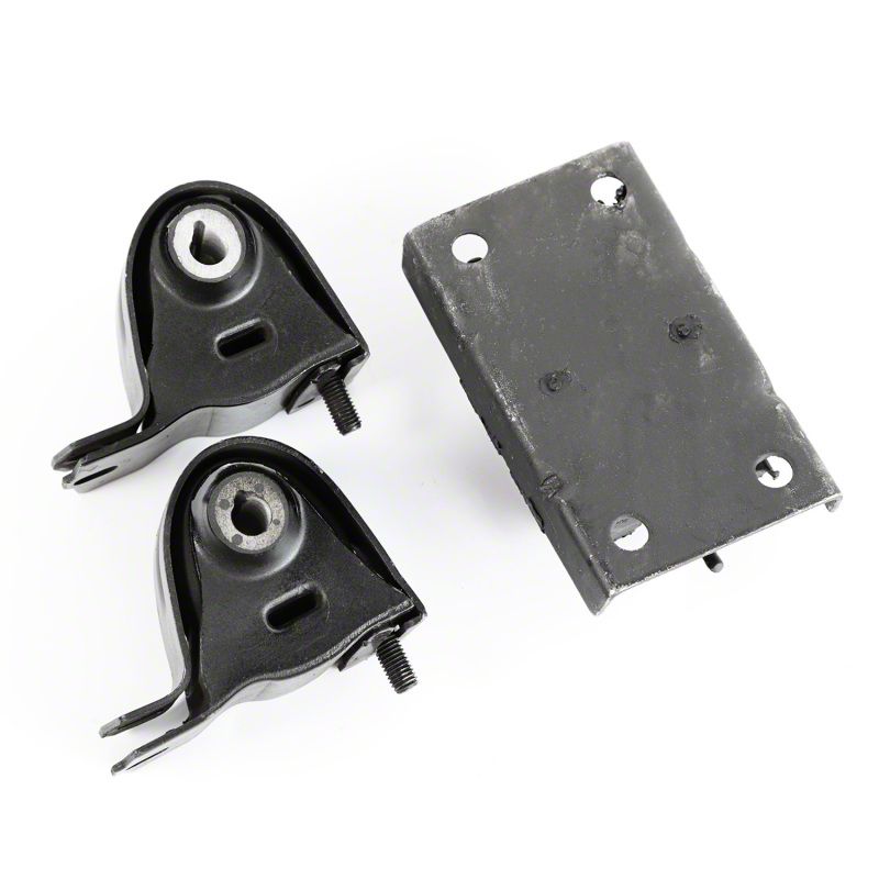 Omix proudly offers high-quality replacement parts for your Willys / Jeep vehicle that meet or exceed OE standards. This replacement engine mount kit fits 97-06 Wrangler TJ models equipped with the 4.0L engine and AX15 manual transmission. Kit includes a pair of engine mounts and a transmission mount