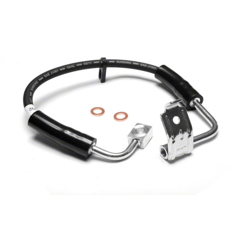 One of the most important components in your Jeeps braking system are the flexible brake hoses. Exposed to extreme temperatures and the elements, over time the rubber begins to crack which can lead to a catastrophic hose failure. Omix has replacement brake hoses, built to the standards demanded by the factory, for safety you can depend on. This replacement FRONT brake hose fits the front driver side of 07-10 Wrangler JK models. (For front right hose, use 16732.30) Replaces OE 5154169AA