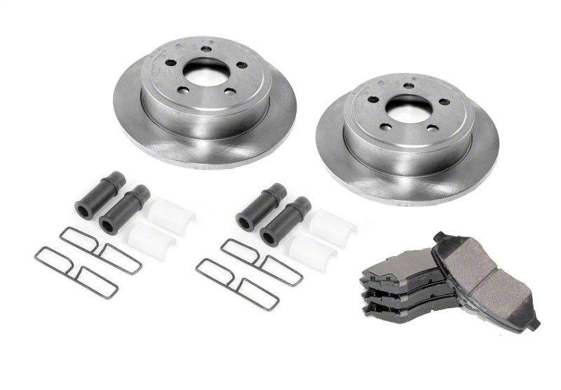 Omix proudly offers high-quality replacement brake components for your Jeep that meet or exceed OE standards so maintaining optimum braking performance has never been so easy! This replacement FRONT disc brake rebuild kit fits 82-83 CJ5, 82-86 CJ7 and CJ8 models. The kit includes 2 new front rotors, a complete set of semi-metallic front disc brake pads and 2 caliper hardware kits- enough to restore the front brakes on your CJ to their proper function.