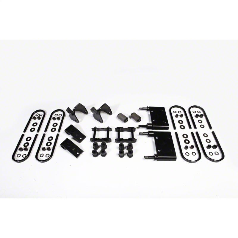 Omix proudly offers a vast collection of OE quality replacement parts for Jeep & Willys vehicles to help keep the Jeep legend alive. This replacement FRONT leaf spring mounting kit fits 76-83 CJ5, 76-86 CJ7 and 81-86 CJ8 Scrambler models. Kit includes a pair of shackles, two spring hanger brackets, main eye bushings, a pair of spring plates, front frame shackle hangers and the appropriate sized U-bolts to mount a pair of front leaf springs. Replaces OE 5359011K