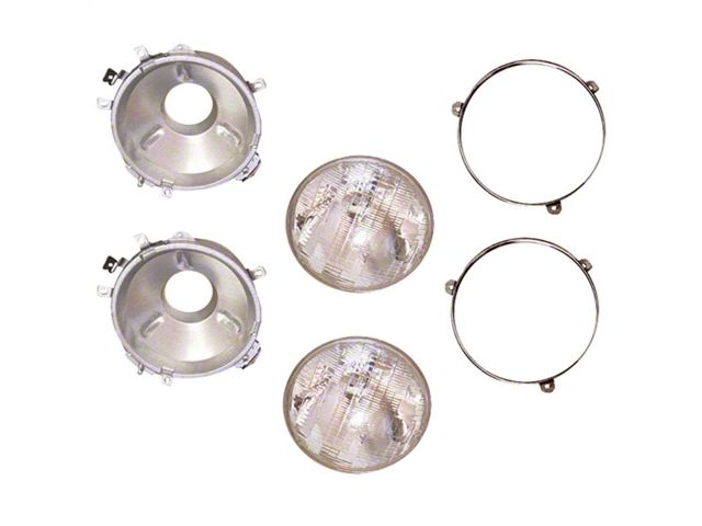 Omix proudly offers a vast collection of OE quality replacement parts for Jeep & Willys vehicles to help keep the Jeep legend alive. These replacement headlight assemblies fit 72-83 CJ5, 72-75 CJ6, 76-86 CJ7 and 81-86 CJ8 Scrambler models. Includes two headlight buckets, two retaining rings and two sealed beam headlight bulbs. For a single headlight assembly, use 12402.01. Replaces OE 998972K